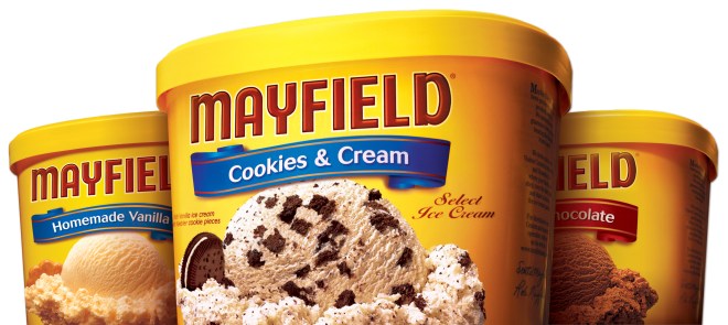 When I noticed the iconic yellow carton sporting a new label, I got curious. Slapping a new name under the tried-and-true logo falls squarely under the repetitive re-branding gimmick- the one where you add the new label and slowing fade off the old one and hope the public doesn’t notice or send hate mail. But the Mayfield name carries so much weight in the South. Why the need to change it?
