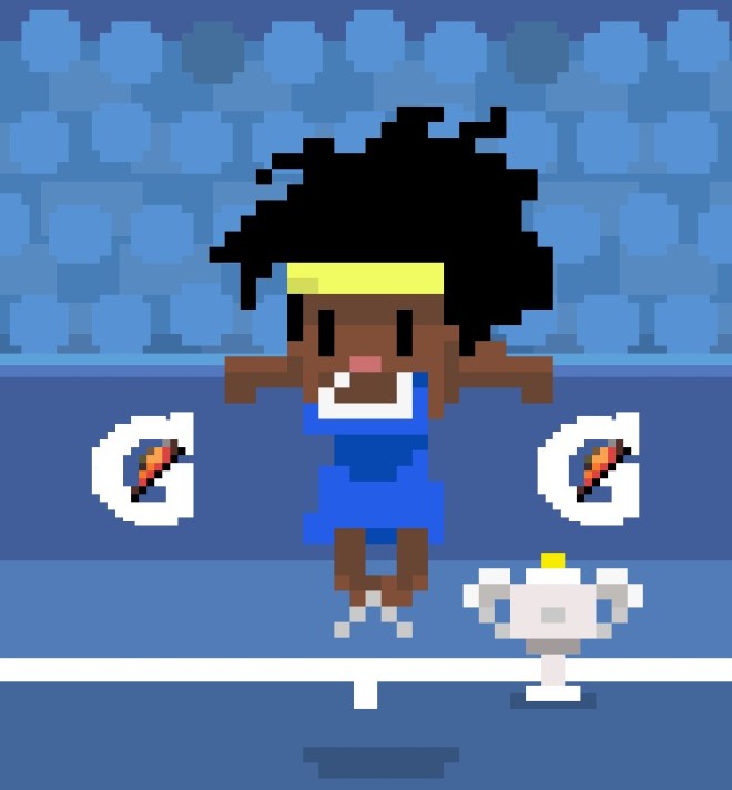 LOOK HOW CUTE SHE IS. At first, I thought this was just an adorable 8-bit version of Serena Williams, aka the best tennis player ever. Not only is she decorated in Olympic gold, and is a powerful role model for black girls everywhere, she’s going for her 23rd major title. 23rd! If she wins at the U.S. Open this year, she will have won the most singles grand slams of any tennis player. Ever. Serena beat the boys long ago when she hit win #18, putting her ahead of beloved tennis star Roger Federer, and she’s currently tied with Steffi Graf at 22. And seeing as she’s the favorite to win this year… (Yeah, shocker.)
